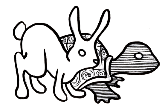 Abstract black and white line drawing with geometric shapes and patterns. View fullsize